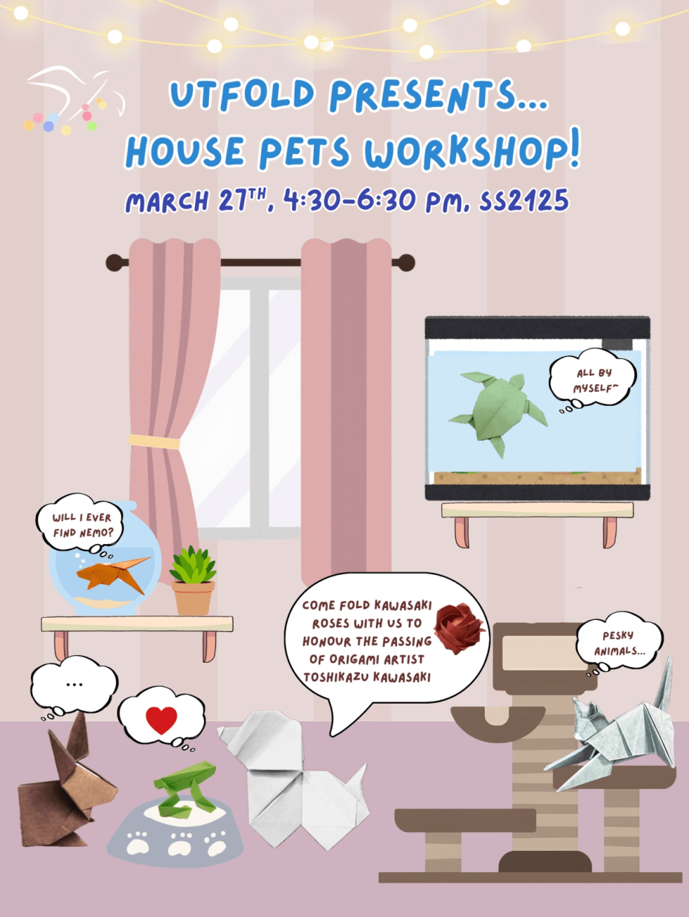 Hello everyone!! This week, we’re making some cute and cuddly classics: household pets, of all shapes and sizes! Also, join us as we fold roses to honor the passing of origami legend, Toshikazu Kawasaki. ⋆。˚ ☁︎ ˚。⋆。˚☽˚。⋆ The House Pets workshop will take place 🗓️FRIDAY, March 27th, from ⏰4:30–6:30 PM in 📍SS2125 (Sidney Smith Building). 𓏲… Continue reading House Pets Origami Workshop ฅ^._.^ฅ