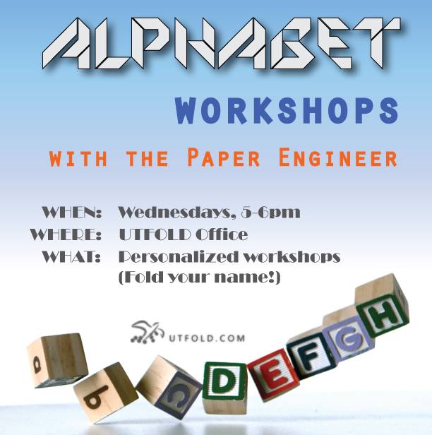 Our Paper Engineer is starting something new starting from Wednesday October 30th! Michael Mao, our Paper Engineer, will be teaching a personalized workshop on Alphabet Folding every Wednesday from 5p.m – 6p.m starting from October 30th. The location is at our very own club office located at Sussex Clubhouse (21 Sussex Ave) Room 532.