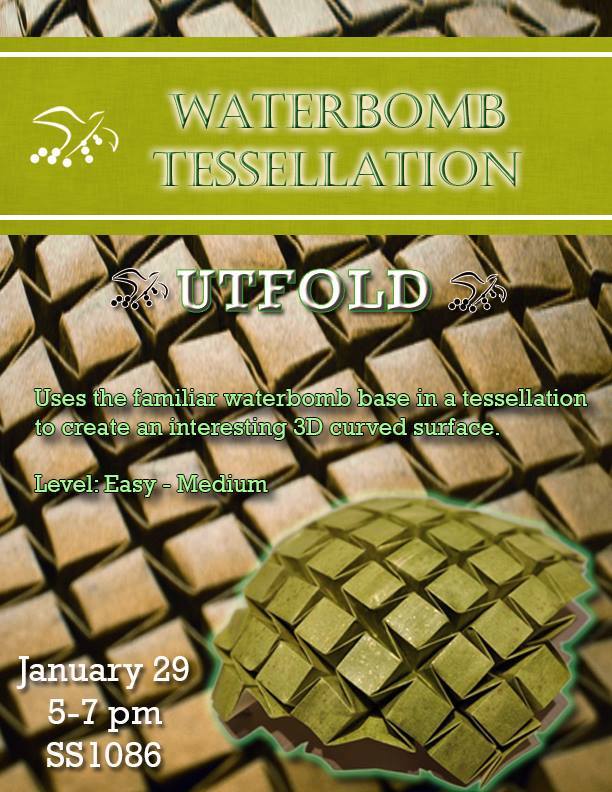 Challenge yourself this Friday with our tessellation workshop where we will be folding the water bomb tessellation. We hope to see you all there! Event: Water Bomb Tessellation Time: Jan. 29, 2016 Time: 5:00 PM – 7:00 PM Location: SS1086