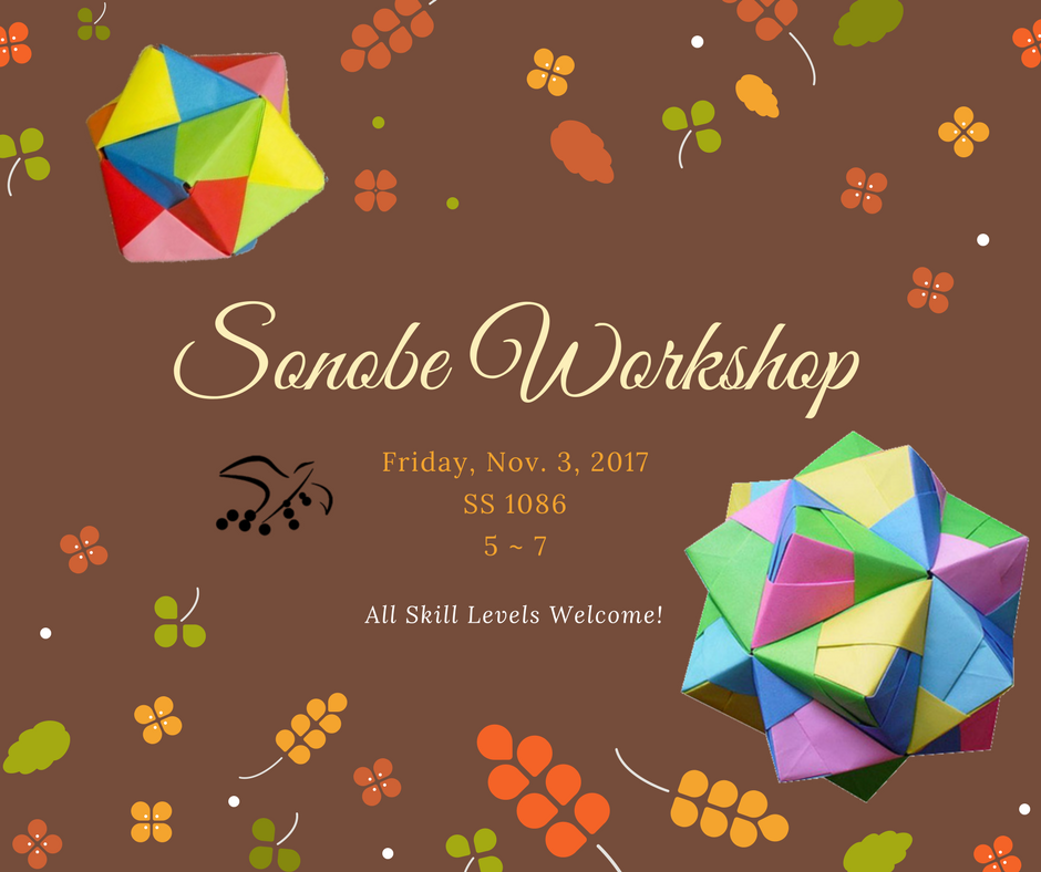 Sonobe, sonobe, sonobe! Here’s a modular folding workshop that will get you that neat little polygon you’ve always wanted. Maybe hang it up to display. I hear it’s holiday season already… well hope to see you all there this Friday!