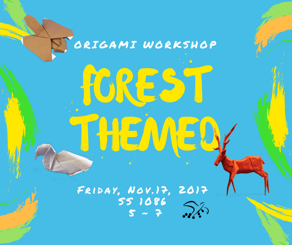 There is a forest themed origami workshop that will let you make flying squirrels, caribou, and ducks. Hope to see you all there this Friday!