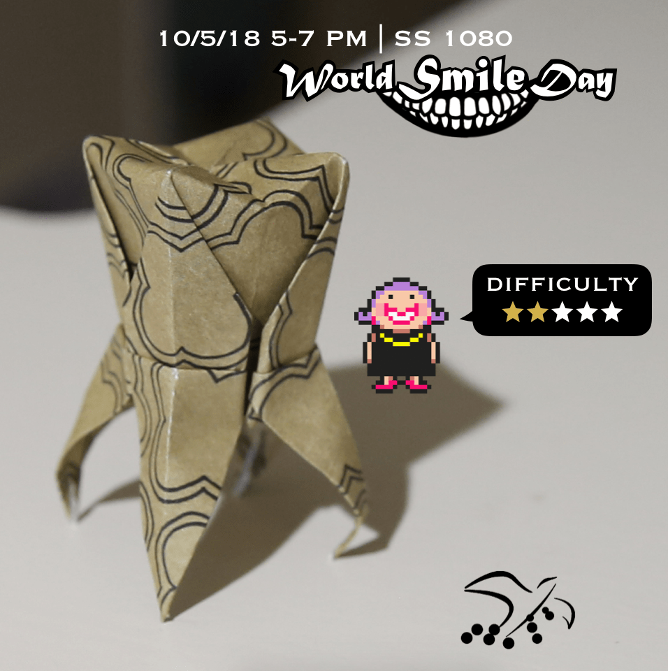 Say cheese! Join us at Friday’s workshop to learn how to fold a molar tooth, in honour of World Smile Day on October 5th! The difficulty of the fold is easy, and we will also have experienced folders who can help if you have any trouble. Hope to see you there!