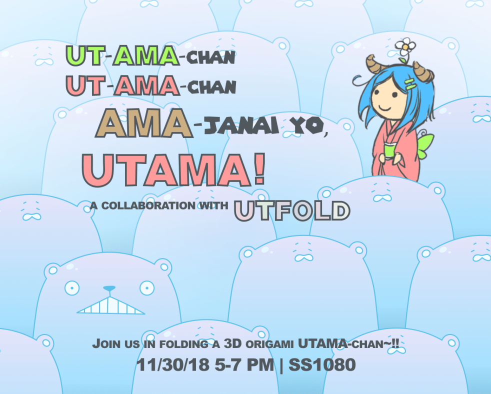 This week, we are partnering up with the U of T Anime and Manga Association (UTAMA) to fold a model of their adorable mascot, UTAMA-chan! The design is loosely based off a 3D origami doll. This is our final workshop for the semester. Thanks for making it a great year! Enjoy your holiday season, and have… Continue reading UTAMA-Chan Workshop!