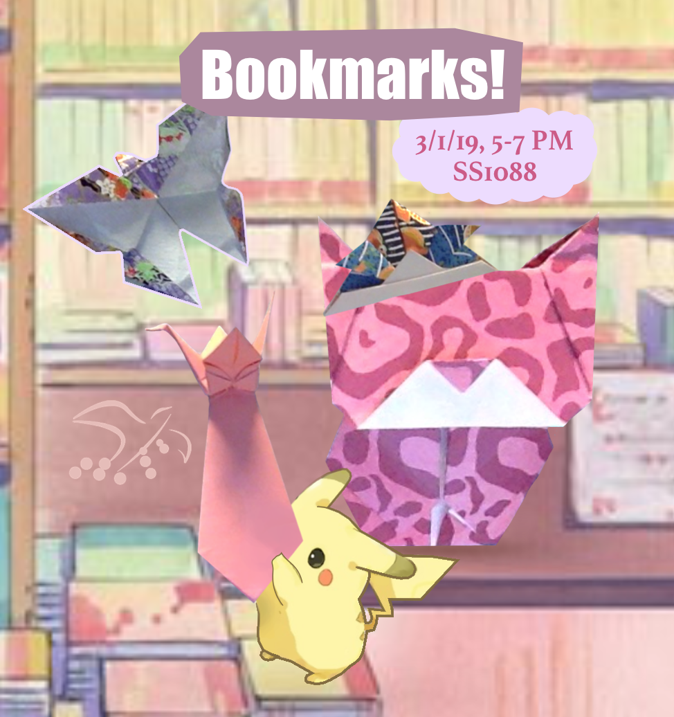 Dog-earing pages is a common practice for readers. It’s an understandable method for saving your place in a fantastic novel, but if you’re renting the book from a library or bookstore, damaging the pages is scandalous. That’s why, this Friday, we’re teaching a variety of bookmark origami! Learn how to fold an easy samurai… Continue reading Bookmarks Workshop