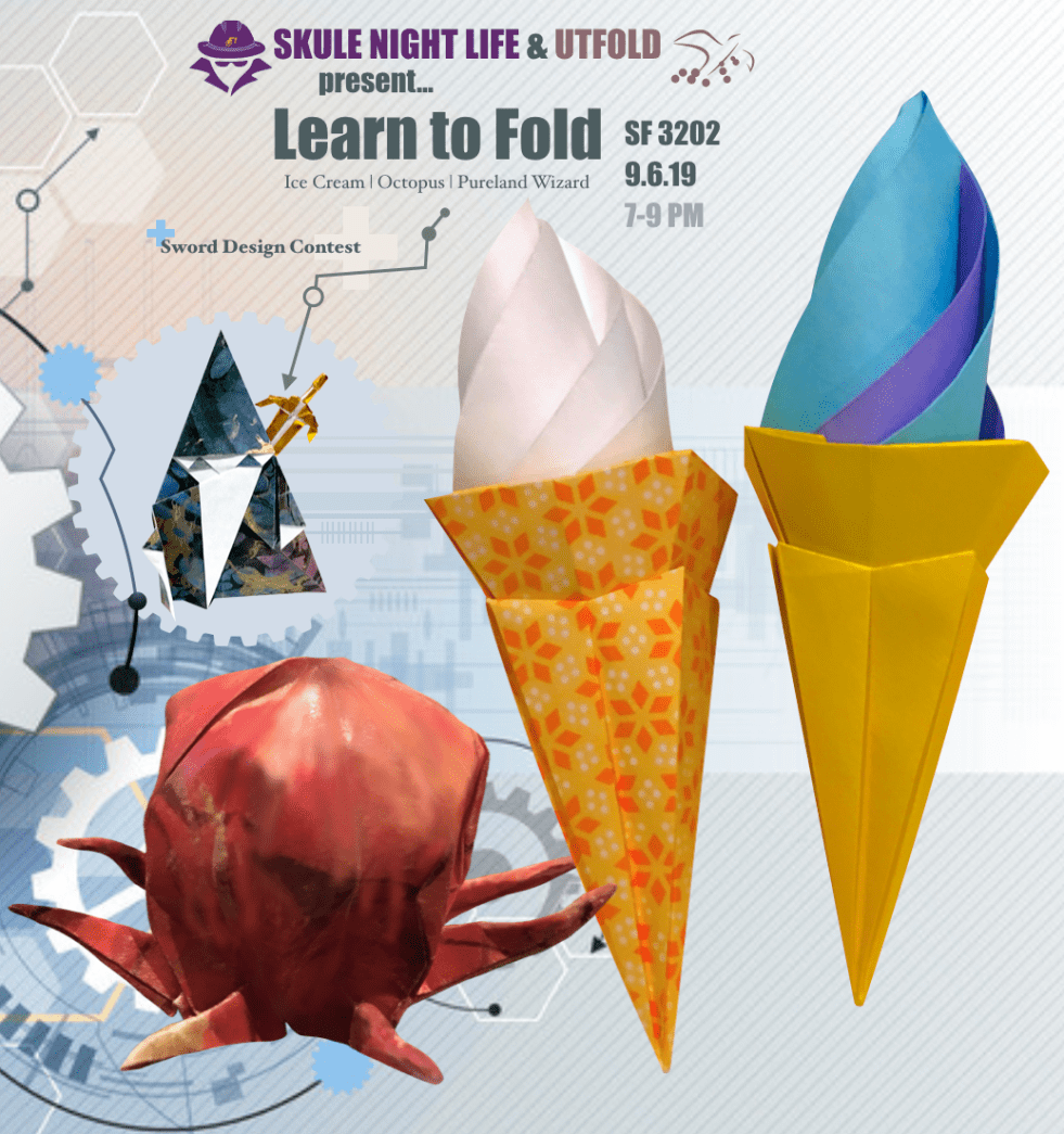 Yay! It soon begins. Drop by Clubs Carnival, Clubs Fair, or the New College Arts & Crafts event if you want us to add you to our email list. For returning members, our first workshop takes place 9/6 (first week of school, Friday). It’s a late-night (7-9 PM) collaboration between UTFOLD and Skule Night Life.… Continue reading Skule Night Life & UTFOLD present… Learn to Fold